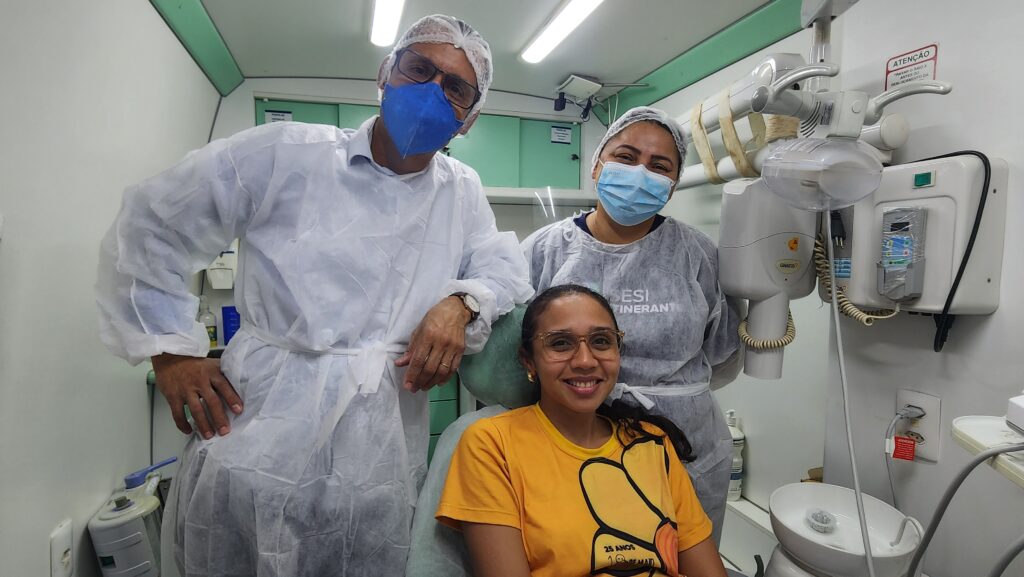 Entre os beneficiados, Antônia Alves da Silva, associada da COPPALJ que reúne agricultores e agroextrativistas dos municípios de Lago do Junco e Lago dos Rodrigues, e é referência na produção e comercialização de óleo orgânico de babaçu e seus derivados para o mercado nacional e internacional. A cooperativa atua com 226 cooperados, dentro dos princípios da economia solidária. Ela elogiou os serviços oferecidos e relatou como o projeto contribui para o bem-estar dos moradores. “Fiz consulta de vista e passei pelo dentista, fui muito bem atendida. Trabalho com agricultura e na produção de azeite e óleo de babaçu, e vejo como o SESI ajuda a cuidar da nossa saúde e da nossa comunidade. Essas ações fazem diferença no dia a dia da gente”, contou Antônia.