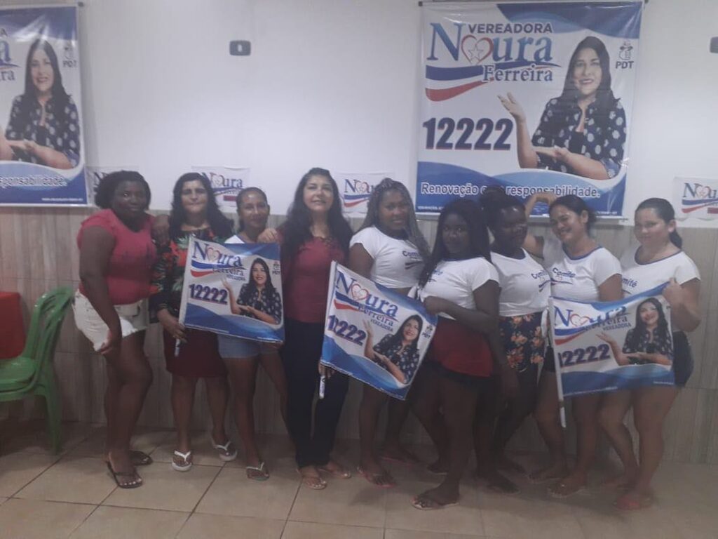 Todos os dias, a agenda de Noura é bastante movimentada. Ela se reveza em atividades no Comitê, mas também cai em campo com sua equipe animada do 12.222, cheia de bandeiras e cartazes a tiracolo. Vale ressaltar que a cidade se vestiu de azul em manifestação de apoio a Noura Ferreira. Povoados como Tereré, Lago, Cabeceira, dentre outros, já receberam a Caravana do 12.222.