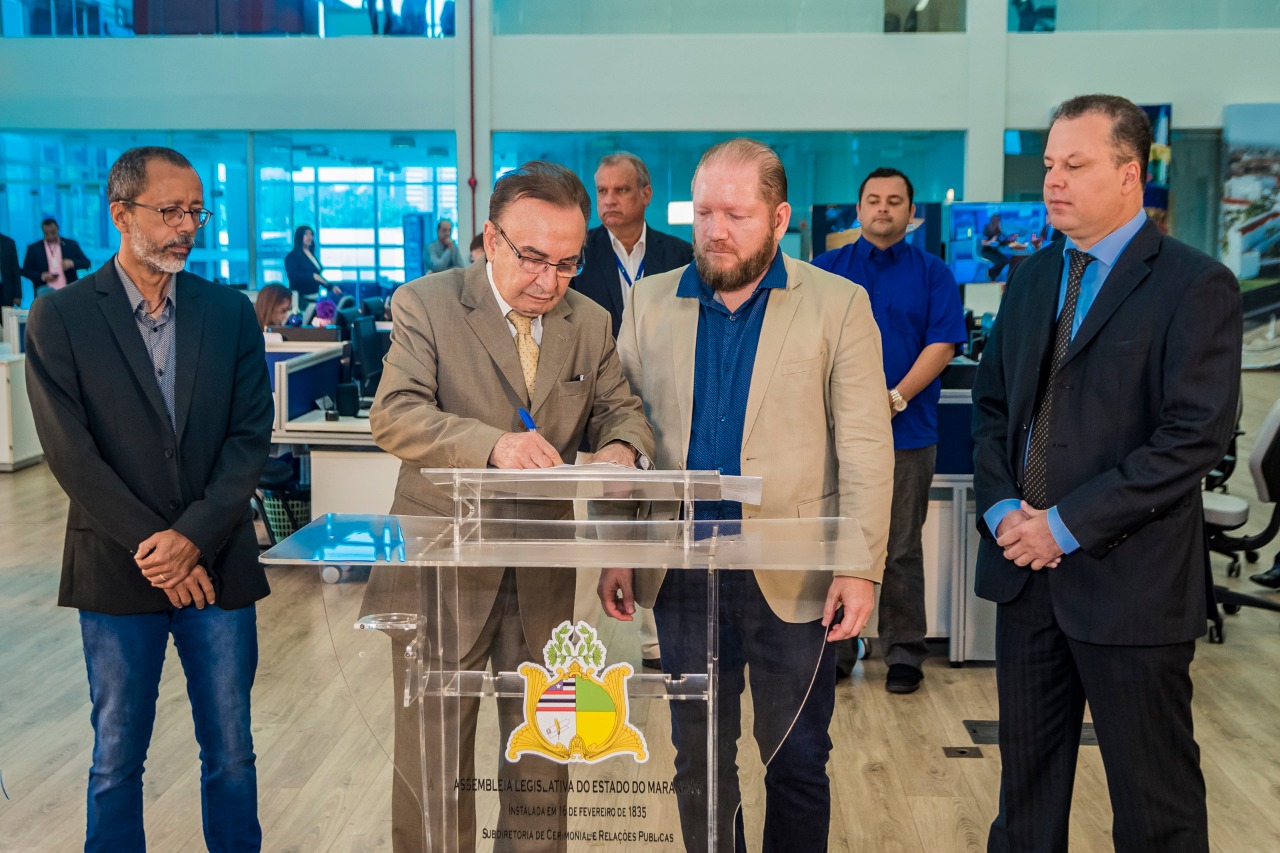O presidente da Assembleia Legislativa do Maranhão, deputado Othelino Neto (PCdoB), e o presidente do Tribunal de Contas do Estado (TCE), conselheiro Nonato Lago, assinaram, nesta segunda-feira (8), o Termo de Cooperação Técnica para a veiculação do programa “TCE em Pauta” na grade da TV Assembleia. O objetivo é levar aos telespectadores informações sobre o trabalho desenvolvido pelo órgão. Participaram também da assinatura o diretor de Comunicação da Alema, Edwin Jinkings, e o coordenador de Comunicação do TCE, Fernando Abreu.