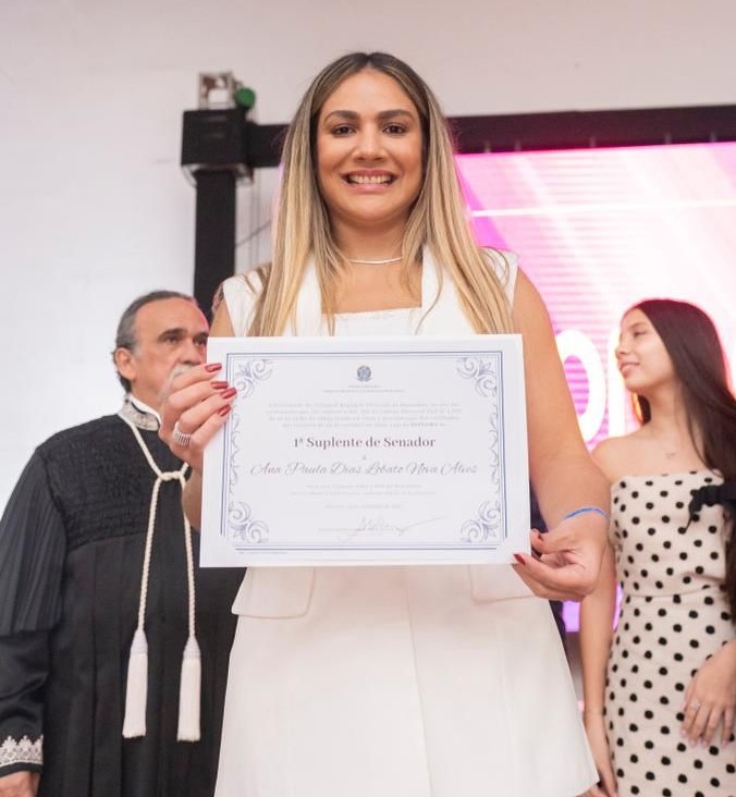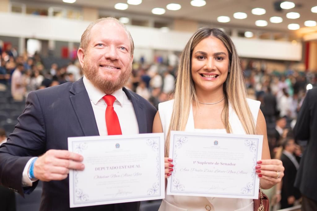 Acompanhada do esposo, o presidente da Assembleia Legislativa do Estado do Maranhão, deputado Othelino Neto (PCdoB), e de familiares, a vice-prefeita de Pinheiro, Ana Paula Lobato (PSB), foi diplomada 1a. suplente do senador eleito Flávio Dino (PSB). A cerimônia do Tribunal Regional Eleitoral do Maranhão (TRE/MA) aconteceu no Centro de Convenções Pedro Neiva de Santana, na noite deste sábado (17).