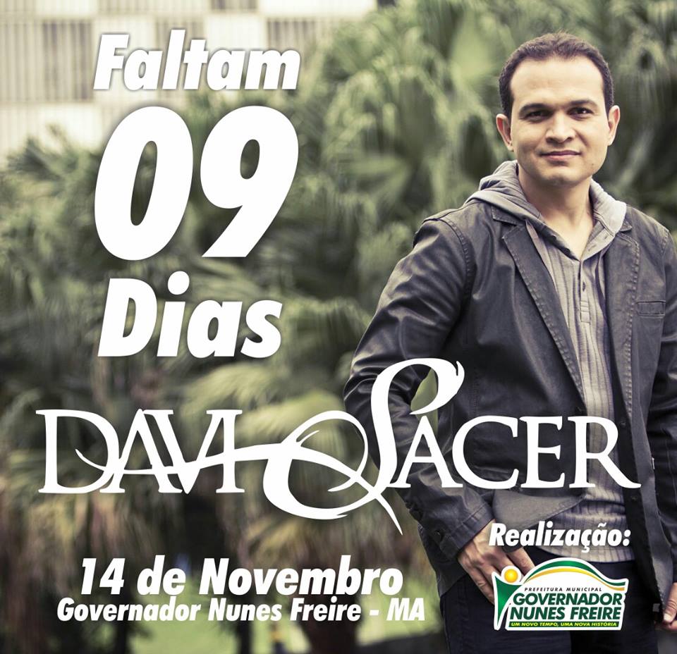 A população do município de Governador Nunes Freire conta os dias para a grande festa em comemoração aos seus 21 anos de emancipação política. Para abrilhantar a festa, uma noite regada a muita adoração e louvor, com a participação especial do cantor gospel, Davi Sacer.