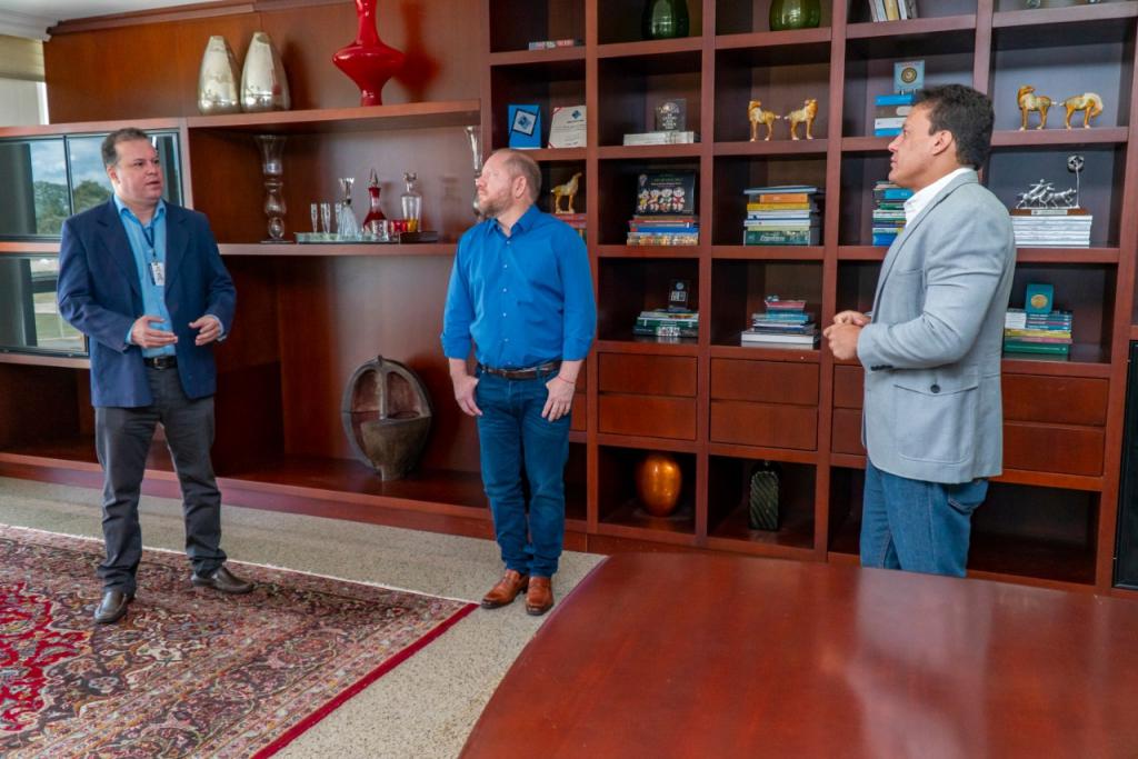 O presidente da Assembleia Legislativa do Maranhão, deputado Othelino Neto (PCdoB), e o secretário de Estado da Educação, Felipe Camarão, oficializaram parceria, nesta sexta-feira (27), visando à utilização da estrutura do Complexo de Comunicação da Alema para a gravação de videoaulas voltadas aos estudantes das redes públicas estadual e municipais. A reunião contou também com a participação do diretor de Comunicação da Alema, jornalista Edwin Jinkings.