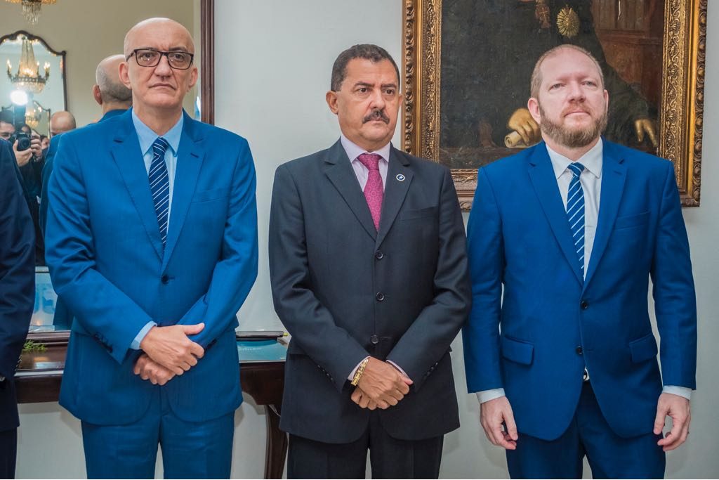Os presidentes da Assembleia Legislativa, deputado Othelino Neto, e do Tribunal de Justiça do Estado, desembargador José Joaquim Figueiredo dos Anjos, e o corregedor-geral da Justiça, desembargador Marcelo Carvalho Silva, assinaram, na manhã desta sexta-feira (27), o Termo de Cooperação para veiculação do programa “Justiça Cidadã”, na TV Assembleia (Digital – Canal 51.2 e TVN – Canal 17).
