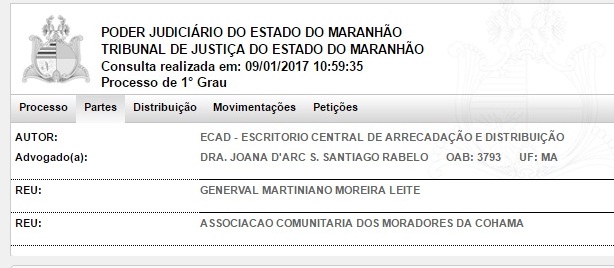 O sistema de busca Jurisconsult, ferramenta do site do Tribunal de Justiça do Maranhão, informa que a última movimentação do processo se deu em 7 de novembro do ano passado. No momento, a tramitação está na fase de análise das contestações dos réus.
