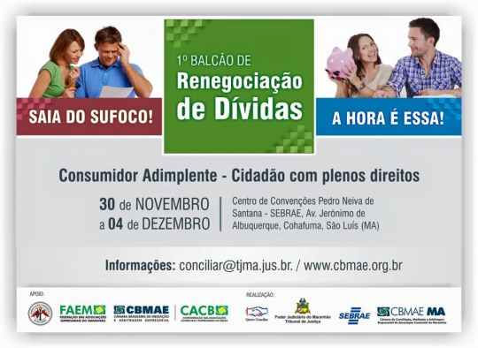 APOIO – A iniciativa conta com a parceria da Associação Comercial do Maranhão (ACM-MA); Câmara Brasileira de Mediação e Arbitragem Empresarial (CBMAE); Câmara de Conciliação, Mediação e Arbitragem Empresarial da Associação Comercial do Maranhão (CBMAE-MA); Federação das Associações Empresariais do Maranhão (FAEMA); Confederação das Associações Comerciais e Empresariais do Brasil (CACB) e Sebrae.