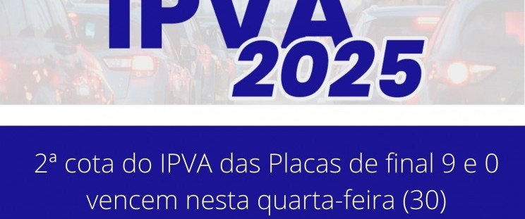 Vence nesta quarta-feira (30) a 2ª cota do Imposto sobre a Propriedade de Veículos Automotores (IPVA) dos proprietários de veículos com terminação de placa 9 e 0.