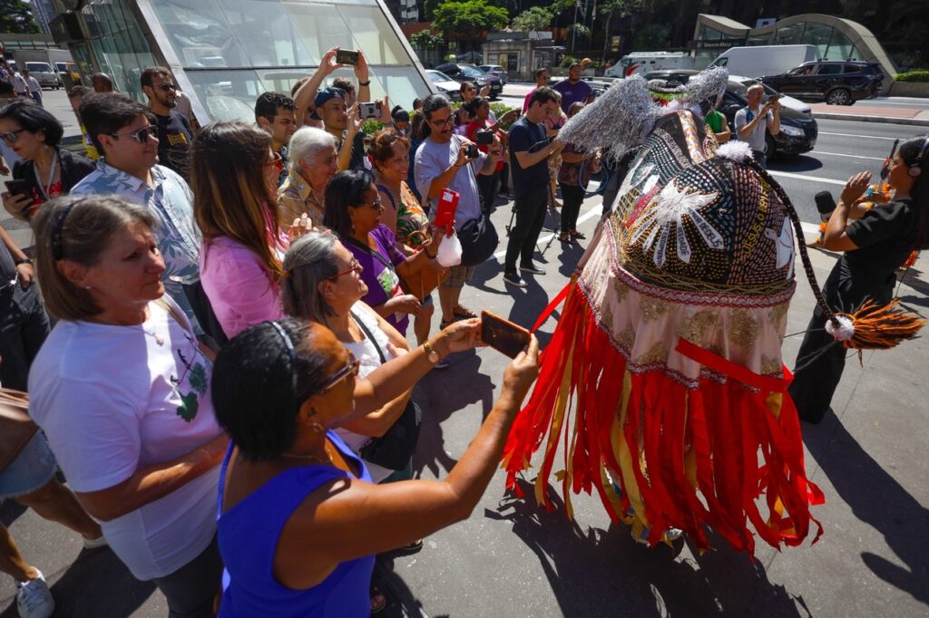 “Eu trabalho na Vila Madalena e peguei o horário de almoço para vir para cá porque eu sou da cultura e acredito que a cultura é isso: pegar todas as partes do país e mostrar para o mundo todo essa riqueza de cultura, e vocês estão mostrando o bumba-meu-boi. Quem for querer estudar [essa manifestação] vai se emocionar, são lindas as histórias e os contos”, disse.