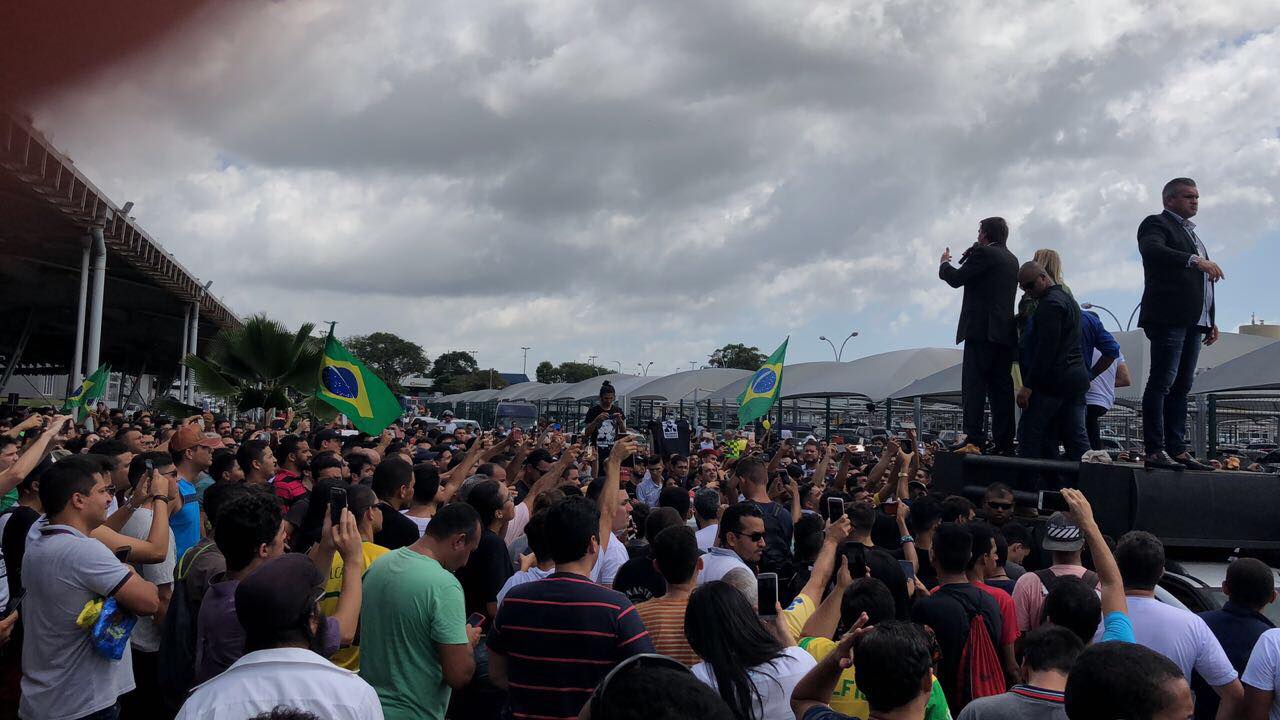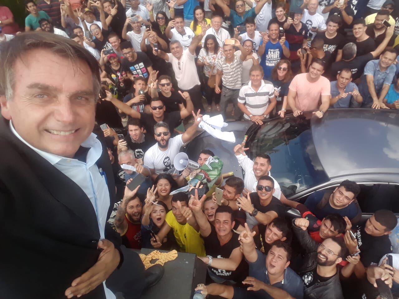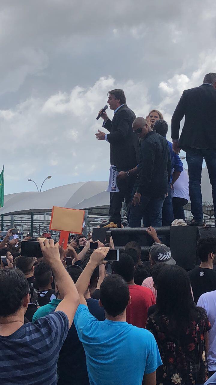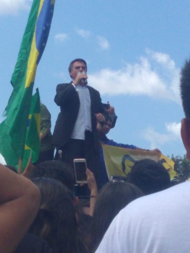 Sob os gritos de “1, 2, 3, 4, 5 mil, queremos Bolsonaro presidente do Brasil”, o pré-candidato desembarcou na capital maranhense e foi direto discursar para a multidão que ali se encontrava.