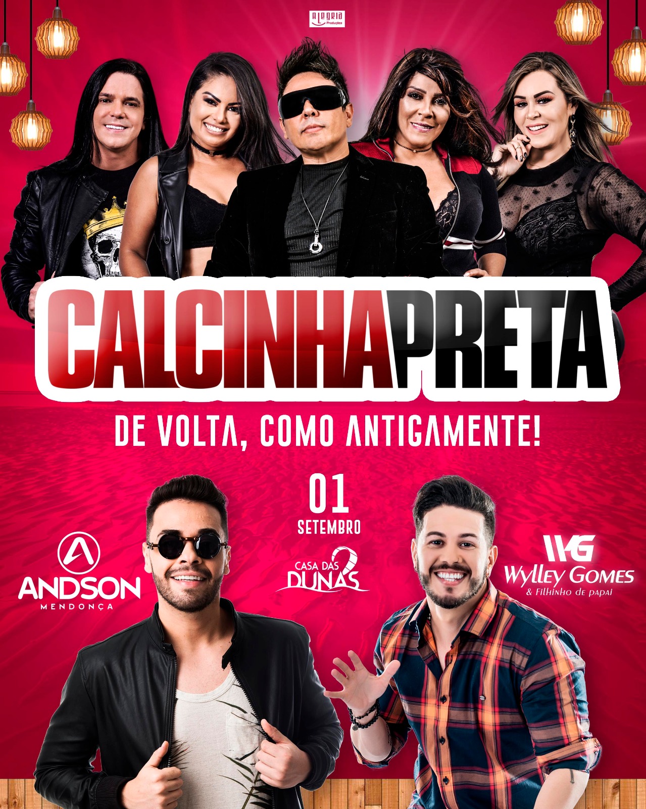 O show na capital maranhense, vai celebrar os 23 anos de carreira do grupo, e reunirá os grandes sucessos que consagraram nacionalmente os músicos Daniel Diau, Silvânia Aquino e Paulinha Abelha, Ana Gouveia e Bel Oliver, da formação original e que estão de volta na Calcinha Preta. A noite terá, também, os convidados especiais, Willey Gomes & Filhinho de Papai e Andson Mendonça.