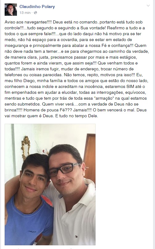 Caso Brunno Matos: “Não vamos fugir”, diz Claudinho Polary