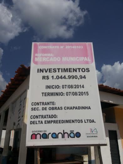 Isso por que, o Mercado Municipal de Chapadinha “está em obras” desde Agosto de 2014 e que, na prática, já era para ter sido entregue, reformado, desde Agosto de 2015. Como se vê in loco, foi mais uma obra mascarada que, com certeza, encheu apenas o bolso da Prefeitura.