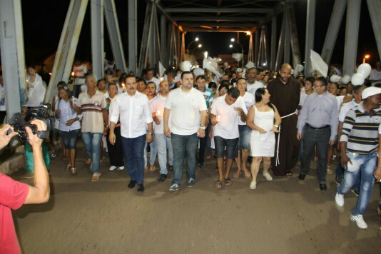 O deputado Vinicius Louro, o ex-deputado Raimundo Louro, o frei William, o padre José Geraldo, lideranças políticas e centenas de jovens pedem paz diante de tanta violência que vêm ocorrendo nas cidades do Médio Mearim.