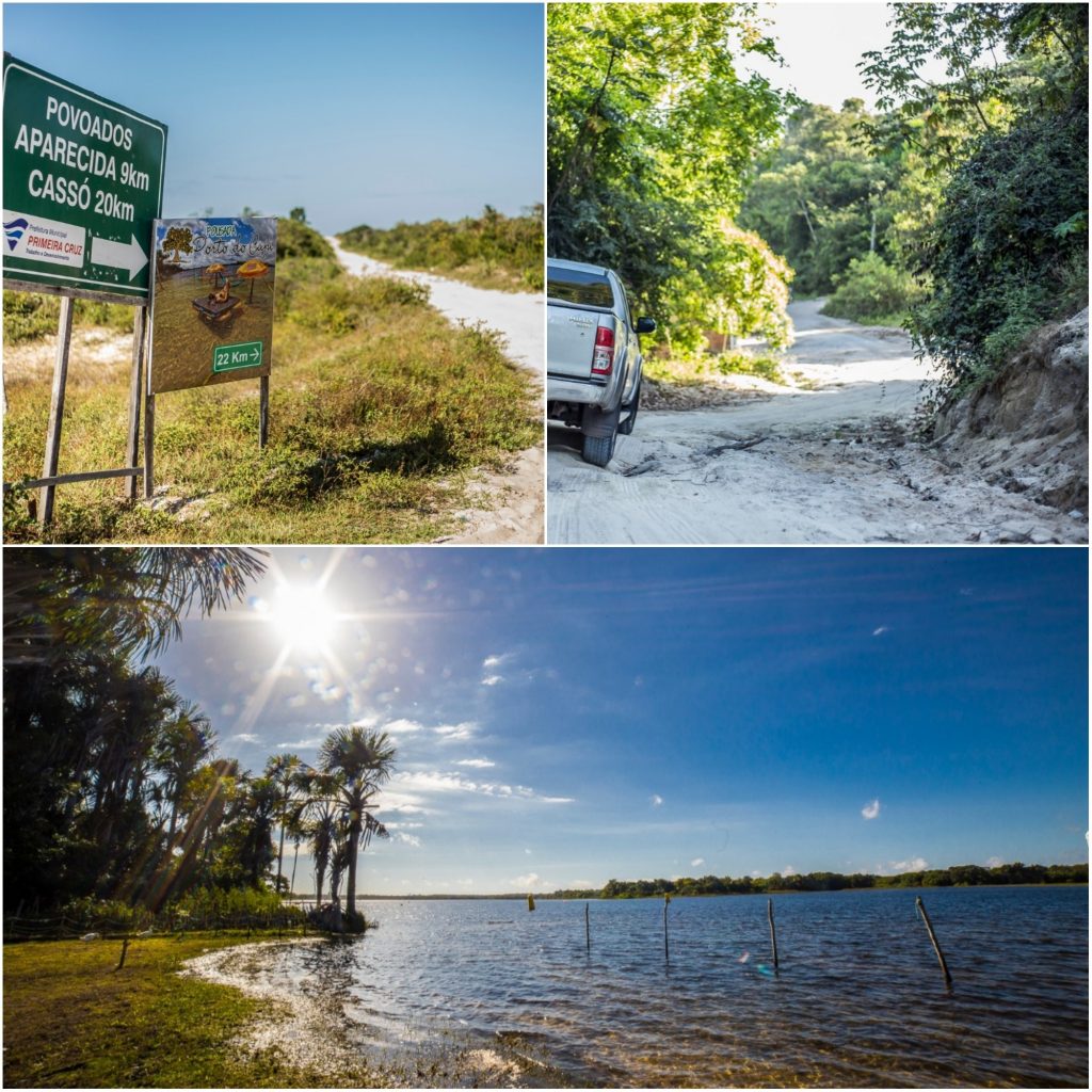 Mais alguns metros de estrada, não demora muito e logo aparece a placa dos Povoados Aparecida e Cassó. De lá até o destino final são mais 20 km de estrada sem asfalto, só com muitos areais, brejos e mata nativa ao redor. O caminho ainda não tem sinalização e, por ser cheio de entradas de um lado e do outro, a presença de um guia ou de alguém que já conheça a estrada é ideal.