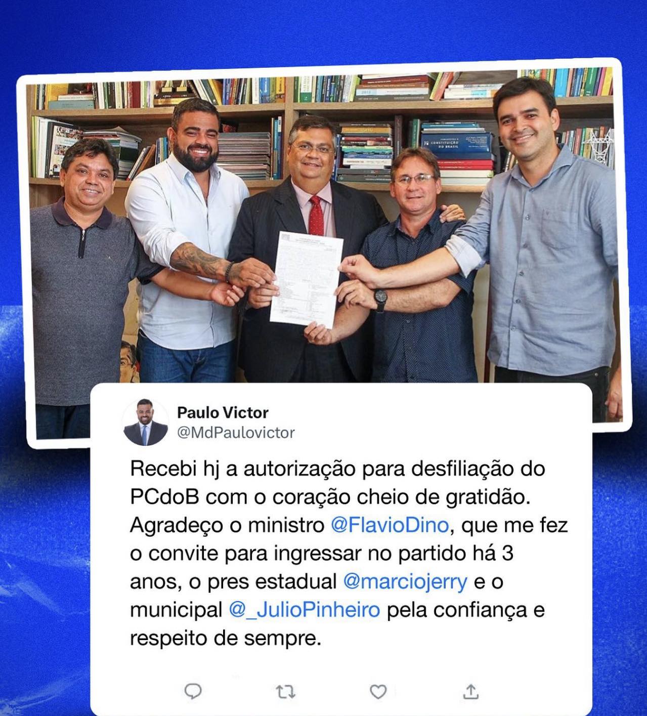 Um dia após anunciar sua saída do PCdoB, o vereador e presidente da Câmara Municipal de São Luís, Paulo Victor, já foi até a sede do Partido e não faz mais parte dos quadros comunistas. Ele já disse que é pré-candidato a Prefeito de São Luís nas eleições municipais do ano que vem.