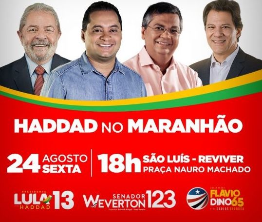 No sábado (24), Fernando Haddad e Manuela D’Ávila seguem para a baixada maranhense, cidade de Viana.