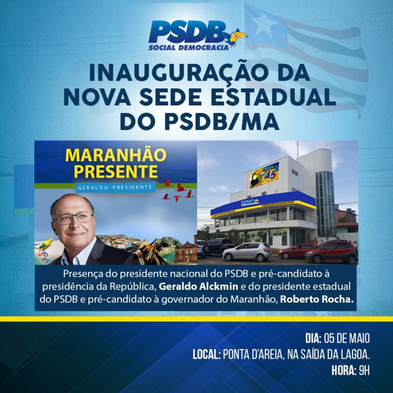 Já no sábado (05), às 09h, inaugura a nova sede do PSDB, no bairro da Ponta d´Areia, e às 10h, preside uma reunião de socialdemocratas maranhenses, quando falará das estratégias do partido para vencer a eleição presidencial e conquistar diversos governos estaduais, dentre eles o Maranhão, além da formação de ampla bancada no Congresso Nacional.
