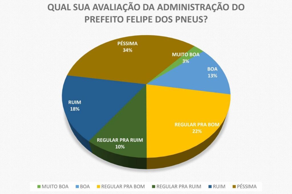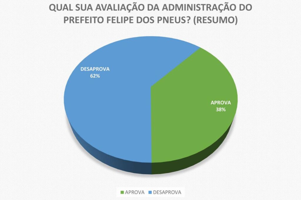 A pesquisa também revelou o quão a atual gestão está desgastada perante os olhos dos santa-inesenses, onde 62% desaprovam o governo de Felipe dos Pneus.