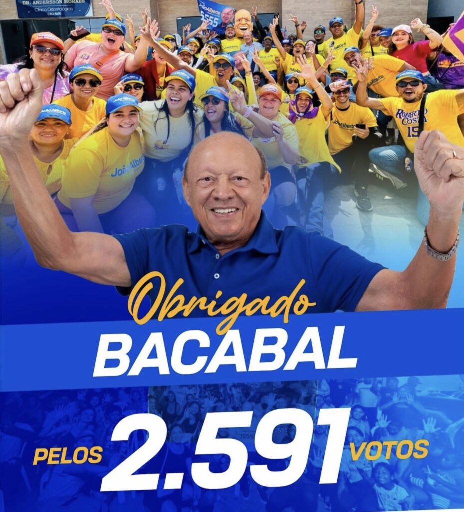 João Alberto de Souza continua fazendo história na política do Maranhão. Ex-Senador, Ex-Governador, Ex-Deputado Federal, Ex-Deputado Estadual, Ex-Vice-Governador, Ex-Prefeito e nestas eleições de 2024, conseguiu eleger-se o vereador mais votado da história de Bacabal, sua terra tão querida e amada.