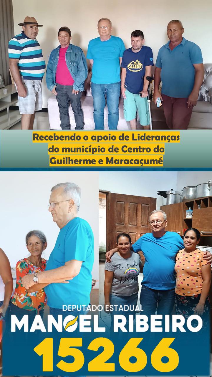 Manoel Ribeiro tem um carinho especial pela cidade de Centro do Guilherme. Quando ele foi deputado e presidente da Assembleia, a cidade foi emancipada por meio de Lei estadual de sua autoria. Centro do Guilherme era um povoado da cidade de Godofredo Viana, e a Lei de sua criação foi publicada no Diário Oficial do dia 10 de Novembro de 1994, com o Projeto de Lei N°300/94, ou seja, hoje a cidade está prestes a completar 29 anos de “existência” e Manoel tem total participação nesse processo.