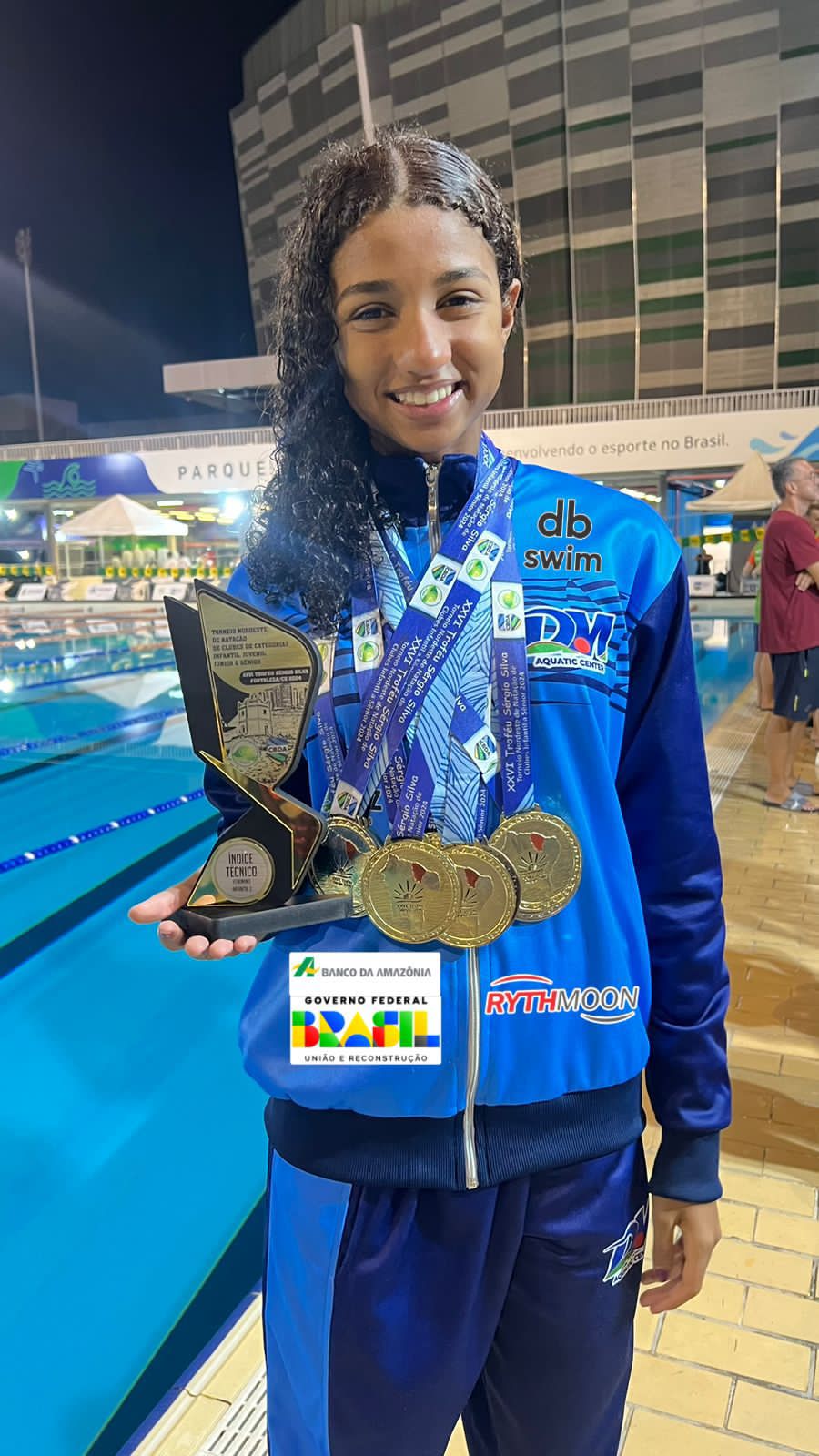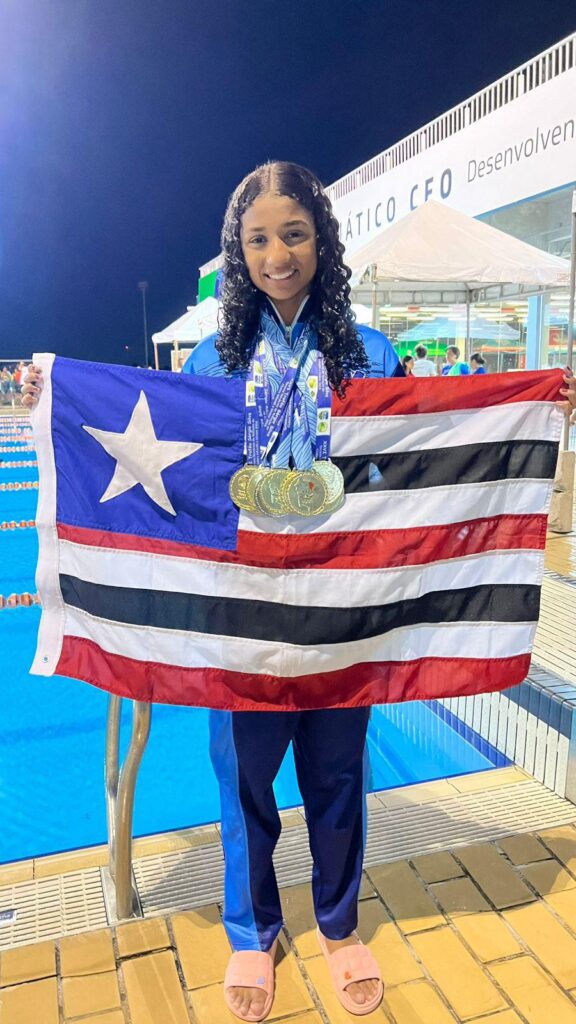 A jovem nadadora Pietra Diniz continua brilhando nas piscinas de todo o Brasil. Desta vez, ela foi o grande o destaque no XXVI Torneio Norte Nordeste de Clubes, encerrando a competição com um total impressionante de dez medalhas. A atleta brilhou nas piscinas e garantiu sete medalhas de ouro, duas de prata e uma de bronze. Além das medalhas, ela ainda foi homenageada com o troféu de melhor índice técnico de sua categoria, sendo reconhecida como a melhor atleta infantil do campeonato.
