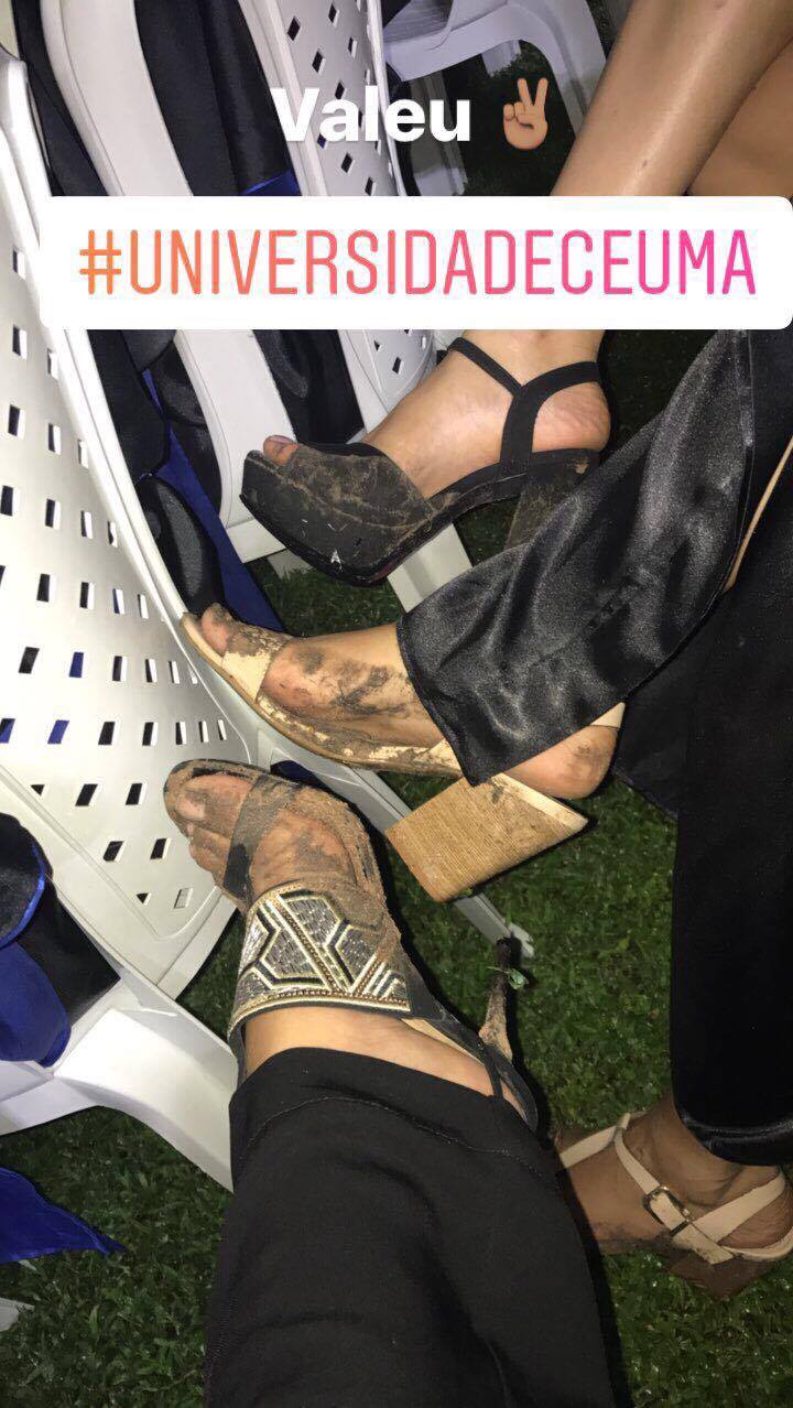 Acontece que a organização da Faculdade simplesmente colocou terra na passagem dos formandos, que acabou virando um verdadeiro lamaçal. Teve formanda que estava de salto alto e, ao atravessar a “passarela” , desistiu de caminhar em meio a tanta lama e tirou o sapato. Até as convidadas que foram prestigiar esse momento único da vida dos formandos, foram embora descalças, e pior, algumas até perderam seus sapatos, pois a lama foi tão grande que os calçados não prestaram mais pra nada. Um verdadeiro absurdo e uma falta de respeito sem limites.