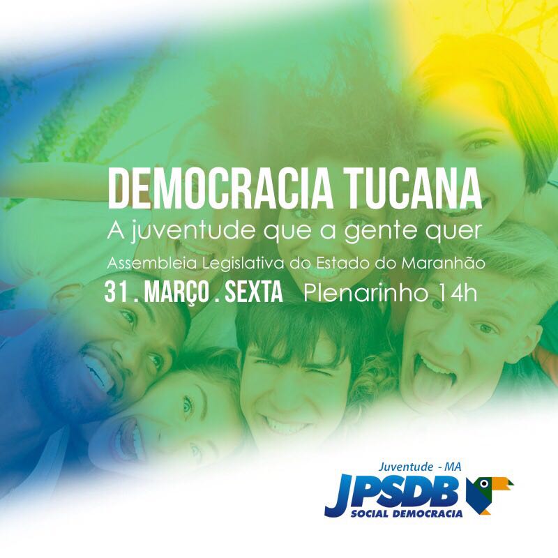 A executiva estadual da Juventude Tucana no Maranhão – JPSDB, convida toda a juventude maranhense para participar na próxima sexta – feira (31/03), de uma plenária com o tema: “Democracia – A juventude que a gente quer” . O objetivo é chamar a atenção da juventude para o tema em questão.