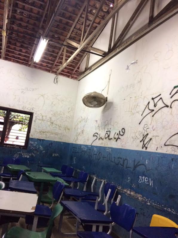 “Meu filho tá em uma sala que mais parece uma cela de cadeia: toda pinchada, suja, sem ventilação e tudo quebrado. Só estuda aqui porque eu não tenho como pagar uma escola de qualidade”, desabafou a mãe de Jhonatas, de apenas 08 anos.