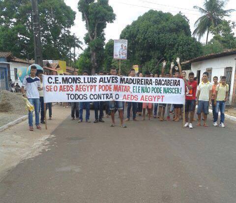 Capitaneados pelo presidente do Grêmio Estudantil, Yan Mendes, os alunos do Centro de Ensino Monsenhor Luis Alves Madureira, da cidade de Bacabeira, foram protagonistas de uma bela iniciativa, na manhã da última segunda-feira (07). Preocupados com os diversos vírus que vem deixando a população brasileira aterrorizada, dentre eles, a Zica, Microcefalia e Febre Chikungunya, os estudantes realizaram uma grande caminhada contra o mosquito Aedes Aegypti.