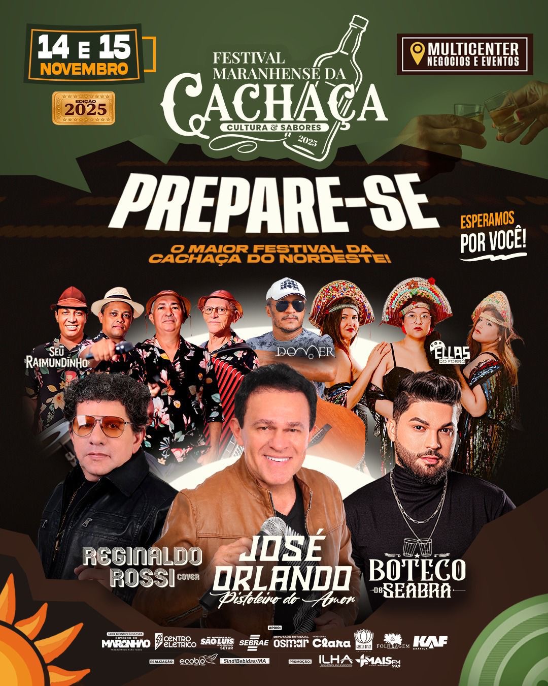 O sabor e a cultura maranhense se encontram nos dias 14 e 15 de novembro de 2025, no Multicenter Sebrae, com a realização do Festival Maranhense de Cachaça 2025 o maior festival de cachaça do Nordeste. Com entrada solidária de 1kg de alimento não perecível, o evento promete uma experiência única de degustações, shows, expositores, e muito mais, valorizando a bebida símbolo da brasilidade e da hospitalidade maranhense.
