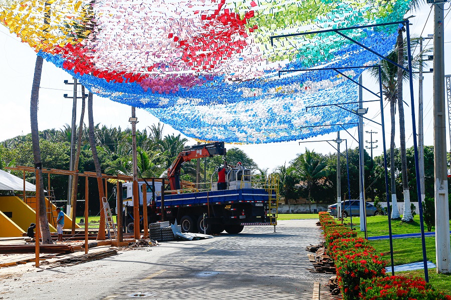 O Governo do Maranhão, por meio da Secretaria de Estado da Cultura (Secma), deu início à montagem da decoração junina em diversos pontos de São Luís, neste sábado (20), anunciando a chegada do Maior São João do Brasil. As coloridas bandeirinhas estão sendo instaladas no Arraial Ipem, criando um clima festivo para a tão esperada comemoração.