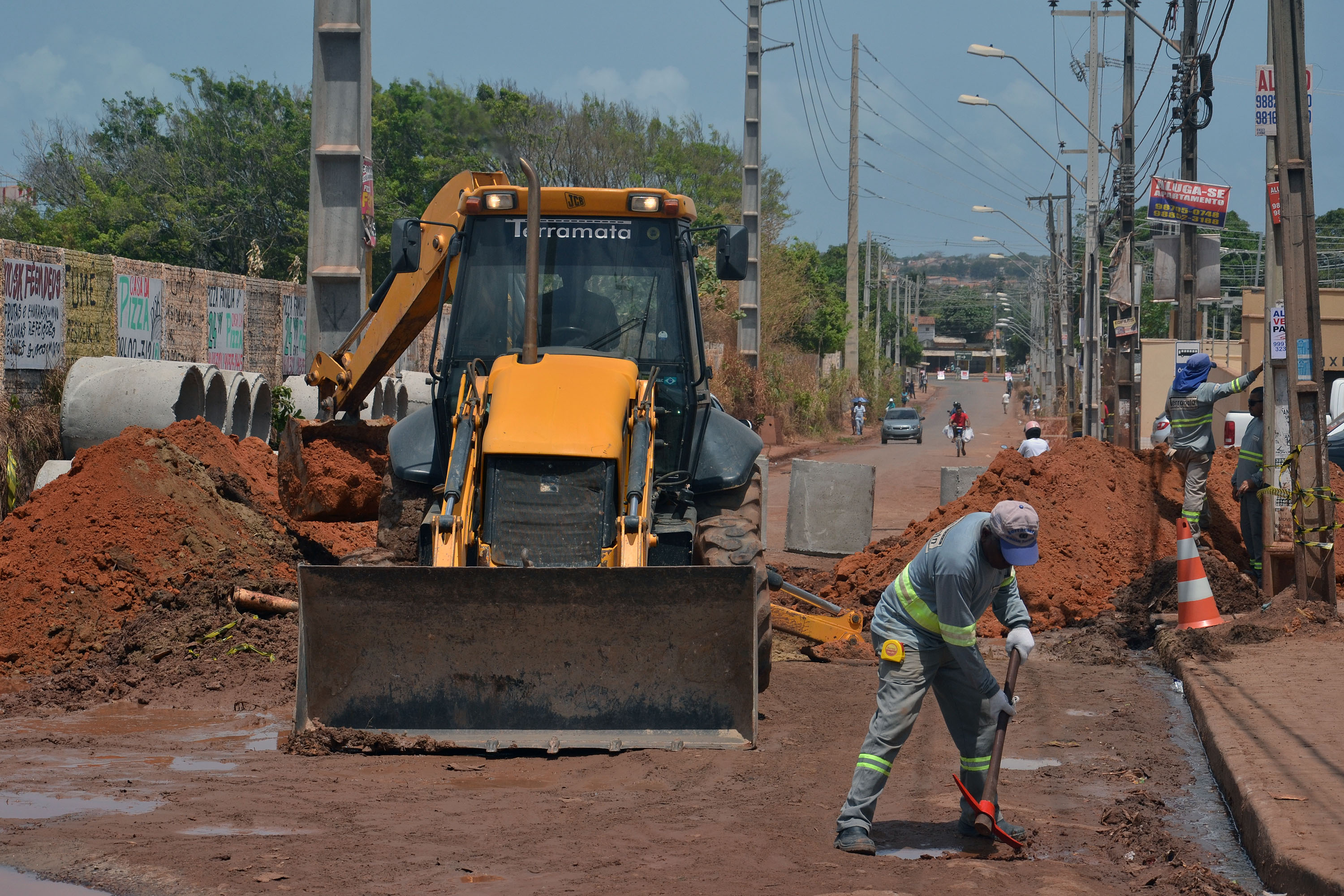 No lançamento dos serviços, Clayton Noleto, secretários municipais e moradores da área percorreram a avenida e verificaram o início da instalação do sistema de drenagem.