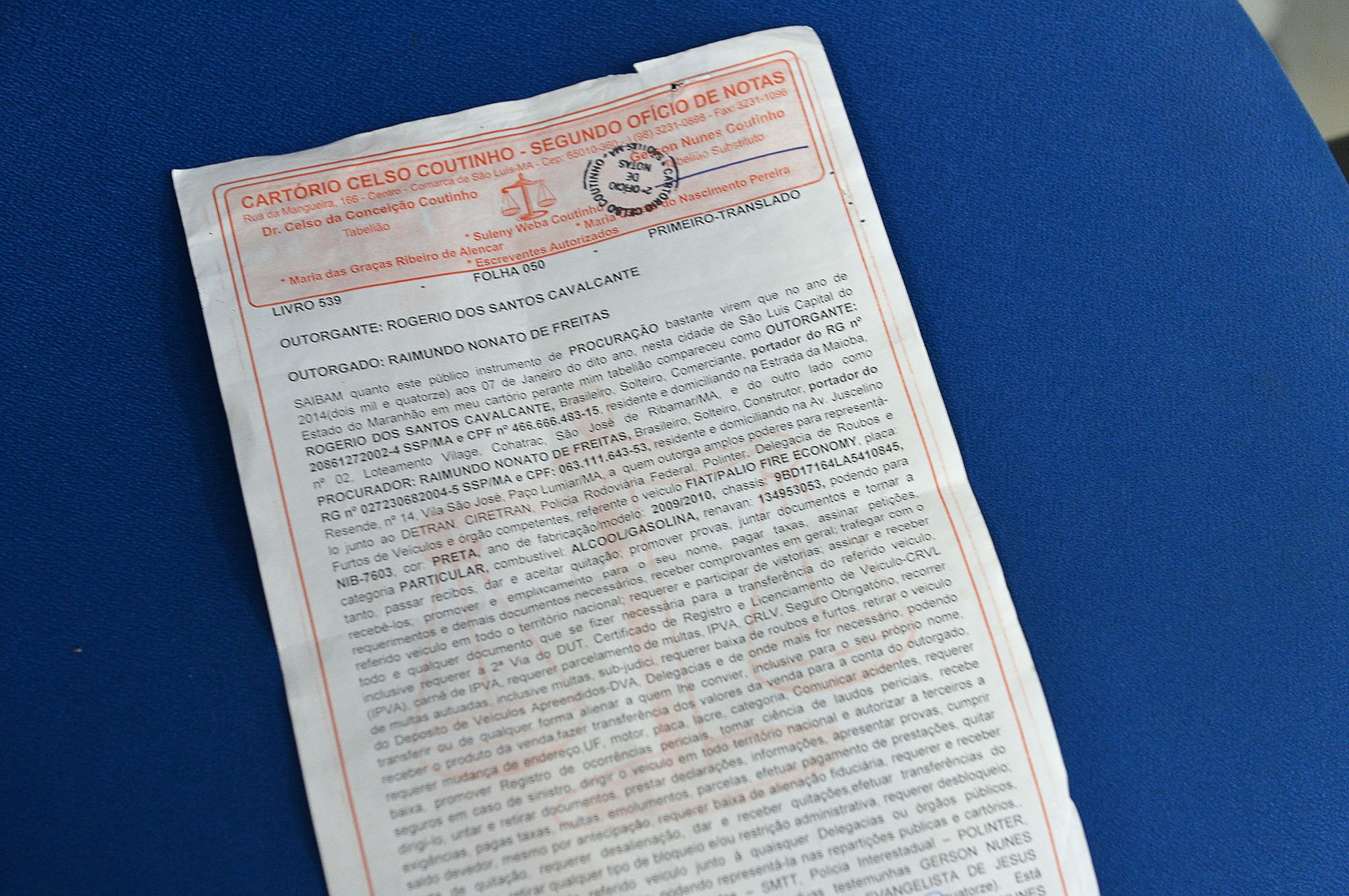 Os indícios que despertaram a suspeita do funcionário do Detran foram a utilização de papel timbrado antigo do cartório e a presença de um selo do Cartório do 1º ofício de imóveis, na procuração emitida supostamente por um Cartório do 2º ofício.