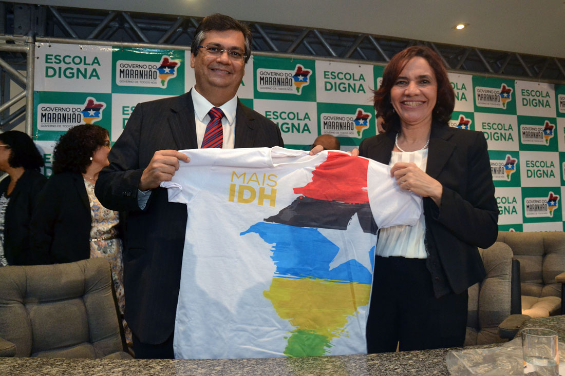 O governador Flávio Dino, ao lado da secretária de Educação do Estado, Áurea Prazeres, feliz da vida ao lançar o Programa “Escola Digna”, na manhã desta quinta -feira (21). O programa foi anunciado logo no dia de sua posse, dia 1 de Janeiro e proporcionará Escolas dignas com estruturas de alvenaria aos estudantes de todo o Estado. Outra boa notícia: As obras já começam em Agosto!