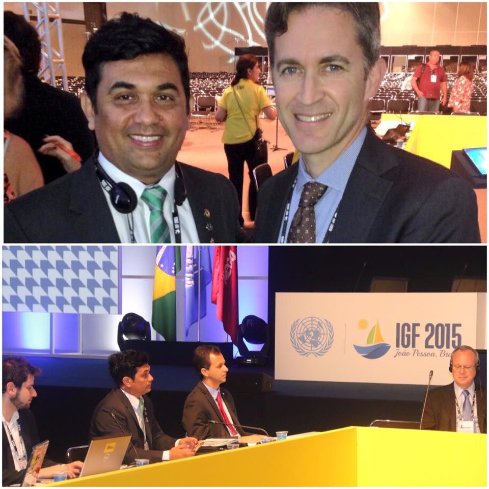 O deputado estadual Wellington do Curso, participou da abertura do “Day 0”, da 10º reunião anual do Fórum de Governança da Internet da ONU (IGF/2015), promovido pela secretaria-geral da ONU e acolhido pelo Governo do Brasil. O “Day 0” é uma das atividades do Fórum e é assim chamado por ser organizado pelo país sede um dia antes do início oficial da programação da Organização das Nações Unidas (ONU). O evento está acontecendo no Centro de Convenções Ronaldo Cunha Lima, em João Pessoa (PB), e terá programação por toda a semana, contando com a presença de ministros, governadores, secretários de Estado, parlamentares e outras autoridades de mais de 100 países. No registro, o deputado Wellington ao lado de David Kaye, Comissário de Direitos Humanos e Relator Especial da liberdade de opinião e expressão da ONU.