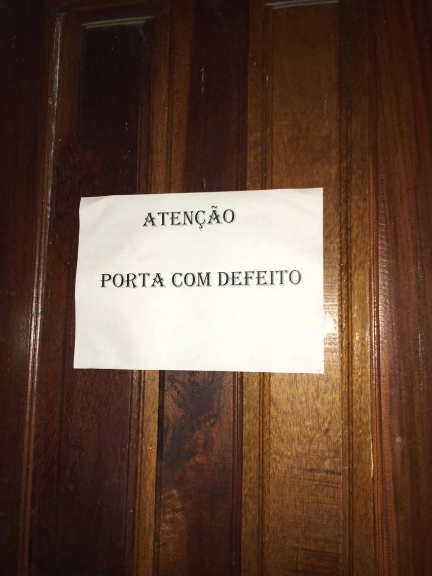 Vale ressaltar que as imagens são do banheiro que fica praticamente ao lado do Plenário, que como podemos ver, está com a fiação elétrica toda exposta, causando perigo para quem passa em frente, sem contar com a “porta com defeito”.