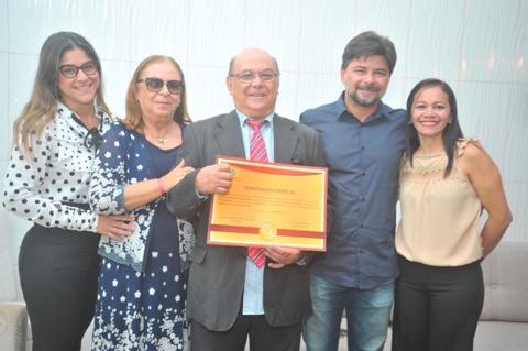 Ao lado de familiares, esposa, filhos e noras, Luíz Alfredo agradeceu a homenagem e se disse lisonjeado pela lembrança.
