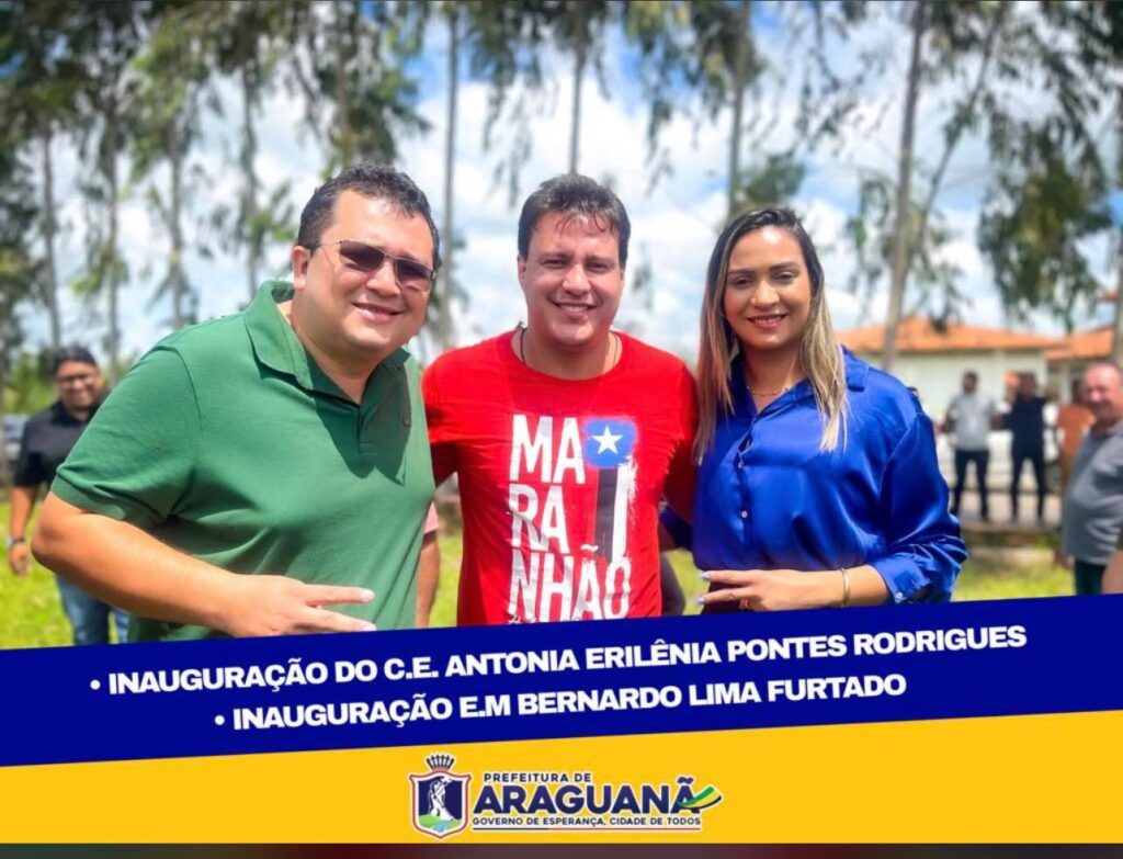 O último fim de semana foi bastante especial na cidade de Araguanã. O motivo? A entrega de duas escolas novinhas em folha para os estudantes da cidade. A solenidade de entrega foi bastante prestigiada pela classe política. Estiveram presentes, além do anfitrião, o Prefeito Flávio Amorim e a primeira dama do município, Thaymara Amorim, o vice-governador Felipe Camarão, que representou Carlos Brandão, além dos deputados federais Josimar de Maranhãozinho e Detinha, e vários secretários de Estado.