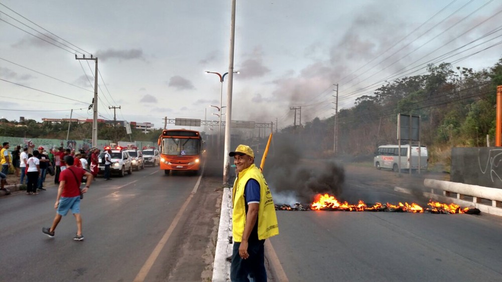 Centrais sindicais brasileiras protestam na manhã desta sexta-feira (10) na Avenida dos Portugueses, em São Luís, contra a reforma trabalhista que entra em vigor a partir deste sábado (11) e também contra a reforma da previdência. Após atearem fogo na via, os manifestantes interditaram totalmente as duas pistas.