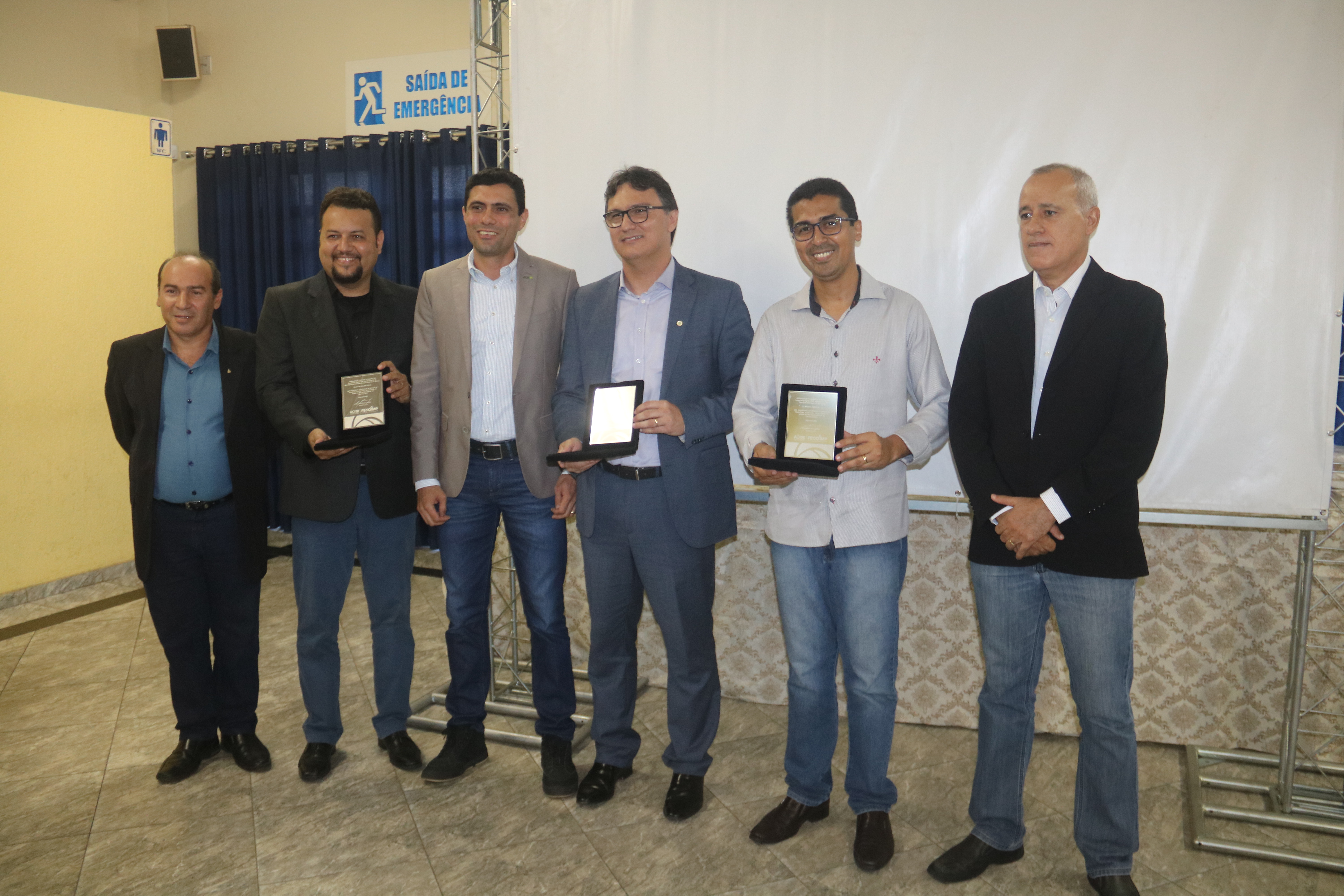 O Governador Flávio Dino e os secretários de Estado, Clayton Noleto, da Infraestrutura e Expedito Rodrigues, da Industria, Comércio e Energia, também foram agraciados com essa homenagem durante a reunião mensal da ACII.