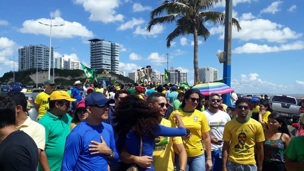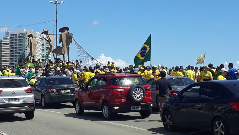 Manifestantes protestaram na Avenida Litorânea e em ruas de São Luís durante carreata, em defesa da reforma da Previdência Social, do pacote anticrime e da Operação Lava Jato. O ato foi organizado pelo movimento Vem Pra Rua.