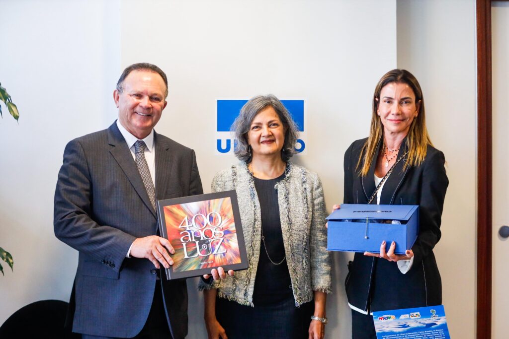 Na visita à sede da Unesco, a comitiva do Governo do Maranhão – integrada pelo governador Carlos Brandão, a primeira-dama, Larissa Brandão, e o secretário de Estado da Comunicação Social do Maranhão, Sérgio Macedo – foram recebidos pela Diretora Adjunta do Centro do Patrimônio da Unesco, Jyoti Hosagrahar, que lidera a implantação de diversos programas sobre Paisagem Urbana Histórica, Cidades Patrimônio Mundial, Desenvolvimento Sustentável e a gestão de projetos patrocinados relacionados ao Patrimônio Mundial e o Programa de Assistência Internacional do Fundo do Patrimônio Mundial.