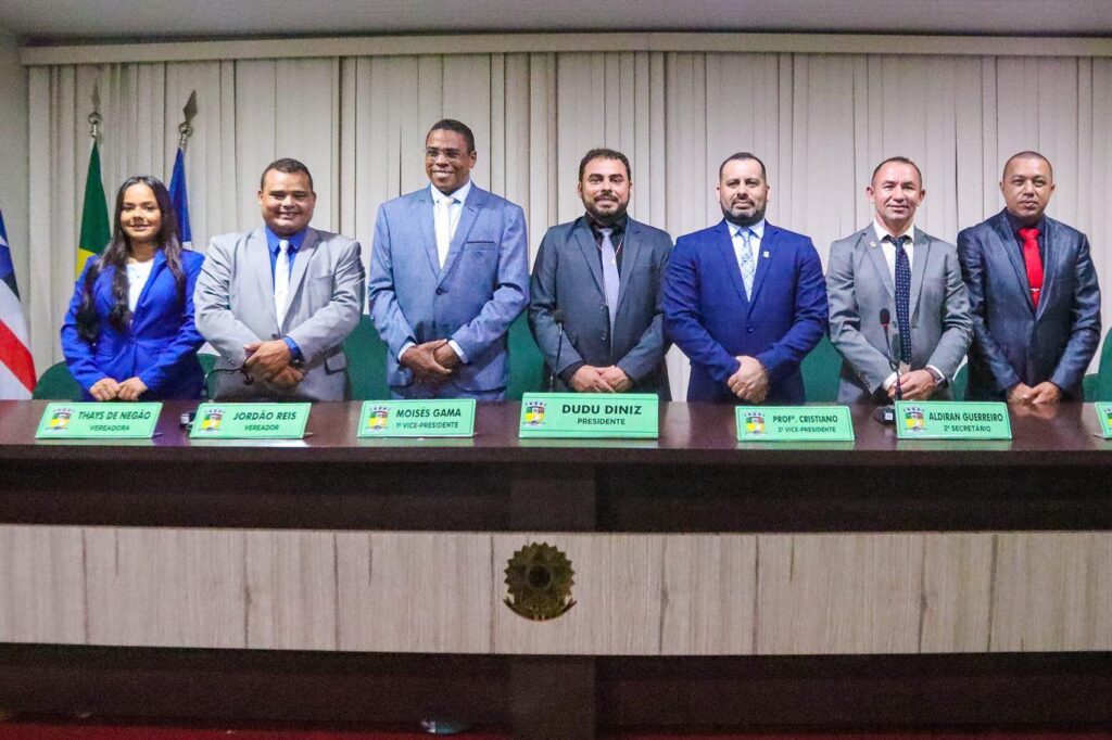 A Mesa Diretora empossada conta com os vereadores: Dudu Diniz Presidente, Moises Gama, como 1º vice-presidente; Professor Cristiano, 2º vice-presidente; Jordão Reis, 1º Secretário; Aldiran Guerreiro , 2º Secretário; Thays de Negão, 3ª Secretária; e Mário Santos, 4º Secretário. A sessão também contou com as presenças de secretários do governo Carlos Brandão, dos vereadores da cidade e de outros municípios, de ex-prefeitos e de várias lideranças políticas locais.