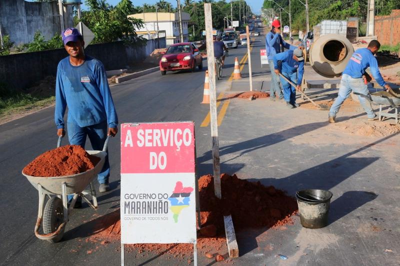 Ainda na MA-201, no bairro Lima Verde, está sendo feita drenagem profunda e logo após será feito o processo de pavimentação. O prazo para conclusão é de 30 dias, a depender das chuvas na região. Dona de uma galeteria, a aposentada Ausedilia Alves da Silva, 51, revela que mora há 24 anos no local e nunca tinha visto o poder público fazer um serviço de drenagem na via. Ao descrever o tormento que era sair de casa após forte chuva, ela agradece a intervenção do governo Flávio Dinho.