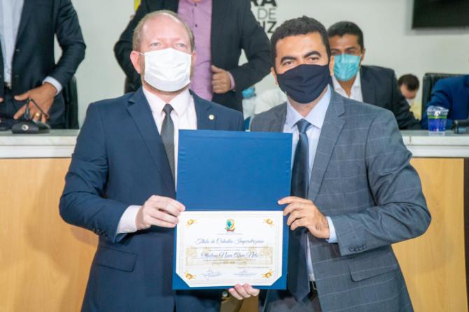 A honraria foi proposta pelo vereador Carlos Hermes (PCdoB) e entregue em sessão solene, no Palácio Dorgival Pinheiro de Sousa, sede do Poder Legislativo Municipal. A cerimônia, conduzida pelo presidente da Casa, vereador Alberto Sousa (PDT), contou com a presença de vereadores de Imperatriz, de deputados estaduais, do senador Weverton Rocha (PDT), do deputado federal Juscelino Filho (DEM), além de outras autoridades.