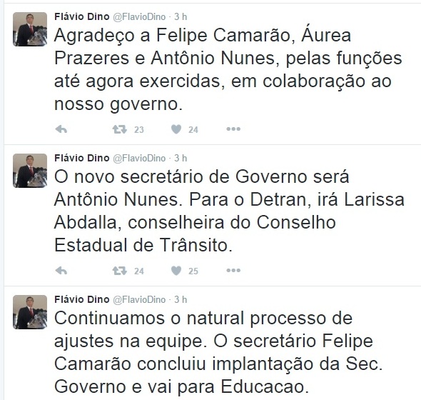 Ainda em sua postagem, Flávio Dino agradeceu aos seus colaboradores até então, pelas funções exercidas na atual gestão.