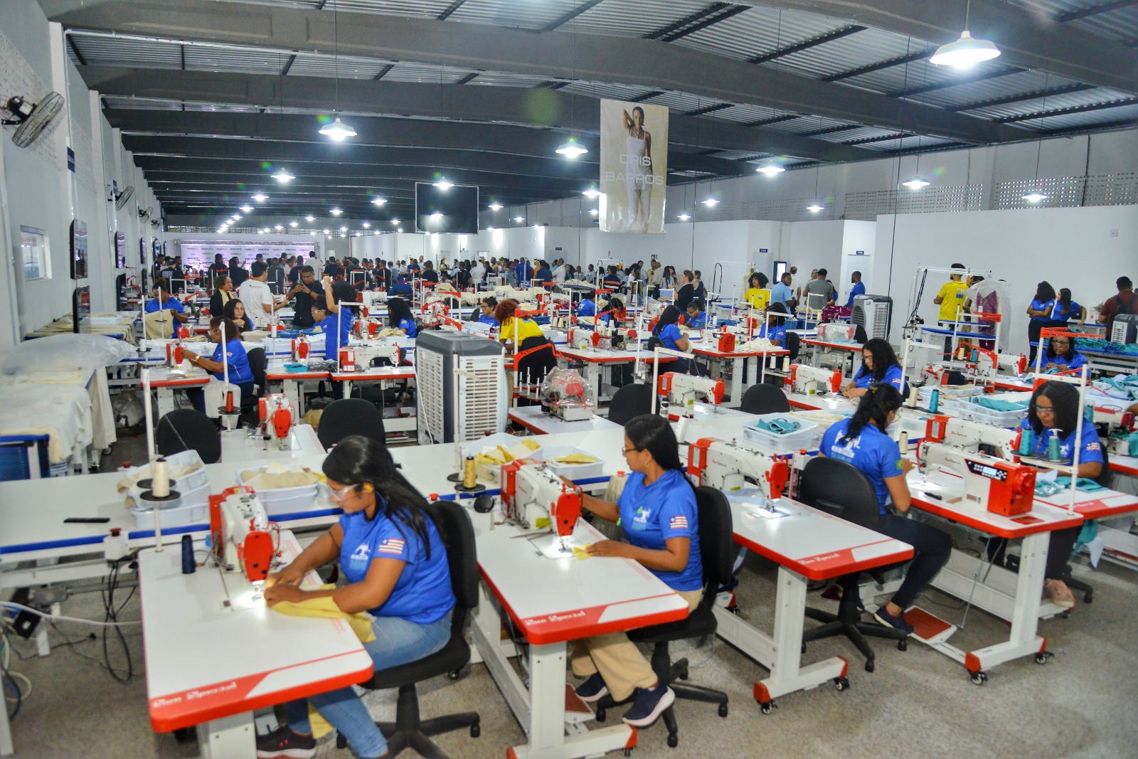 O governador Carlos Brandão entregou no último domingo (16/11) a primeira etapa do Polo de Corte, Costura e Confecção de Rosário. O empreendimento resgata o objetivo de transformar social e economicamente a Região do Munim com o crescimento da indústria de vestuário. A primeira empresa a se instalar é a Alta Costura MM, que produz peças para marcas como Bo.Bô, Richards e Cris Barros. A revitalização do polo de confecções é uma iniciativa conjunta do governo estadual, iniciativa privada, prefeitura local, FIEMA, SENAI, SEBRAE e a Associação MM Solidária Projetos Sociais.O polo conta com um galpão de 2.200 m² com 170 máquinas de costura, equipamentos de apoio e estrutura para abrigar empresas especializadas em corte, costura e modelagem. A Alta Costura MM, que confecciona peças para marcas de alto padrão. Muitos dos mais de 100 contratados da empresa conquistaram a vaga depois de capacitação no Serviço Nacional de Aprendizagem Industrial (SENAI Rosário), que funciona ao lado do polo, e este ano inaugurou um laboratório de costura com equipamentos de primeira linha.
