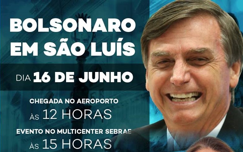 O deputado federal e pré-candidato a Presidente da República, Jair Bolsonaro (PSL) confirmou sua vinda para São Luís, no próximo dia 16 de junho (sábado).