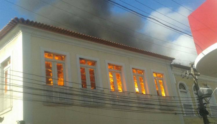 As chamas começaram na parte de trás do prédio, no segundo andar, e rapidamente tomaram conta do casarão, que teve o interior destruído. As portas e janelas da parte de cima viraram cinzas. O telhado foi consumido pelo fogo.