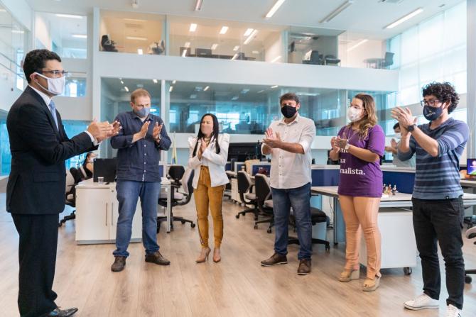 A TV Assembleia recebeu, na tarde desta terça-feira (17), o Prêmio BNB de Jornalismo 2020 pela reportagem “Empreendedor investe em trabalho de impacto social”. O prêmio foi entregue pelo superintendente estadual do Banco do Nordeste do Brasil (BNB), Denivan Borges, em ato realizado no Complexo de Comunicação da Alema, do qual também participaram a diretora adjunta de Comunicação, Sílvia Tereza, e a subdiretora de TV e Rádio, Glaucione Pedrozo.
