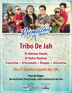 A banda maranhense Tribo de Jah dá inicio a programação do Réveillon de Todos, que nesta edição acontecerá com 6 dias de festas. O show será nesta quinta-feira (27), a partir das 19h, na Praça do Reggae, no Centro Histórico de São Luís. O evento é realizado pelo Governo do Maranhão, por meio da Secretaria de Estado de Cultura e Turismo (Sectur).